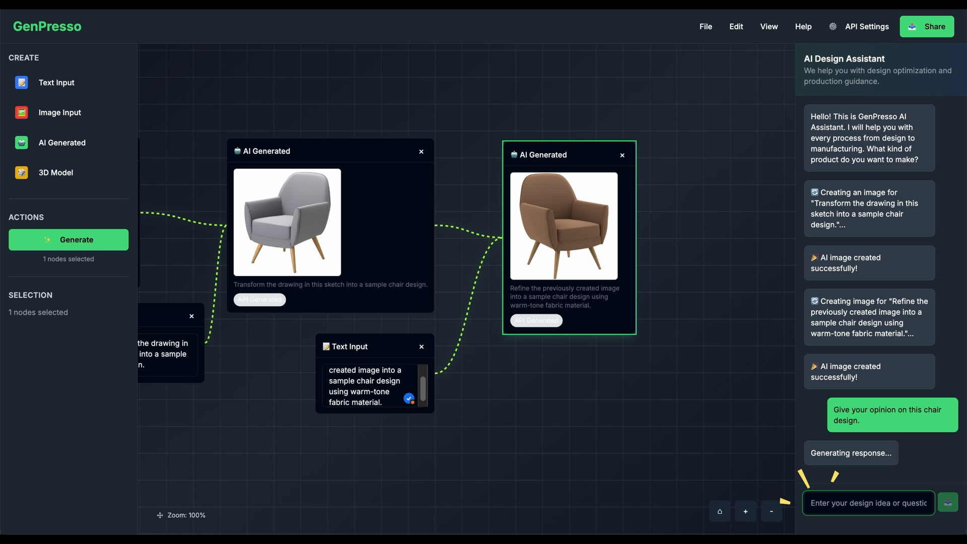 By conversing with the AI agent, users can refine their intent, and the system improves results by reflecting design intent.